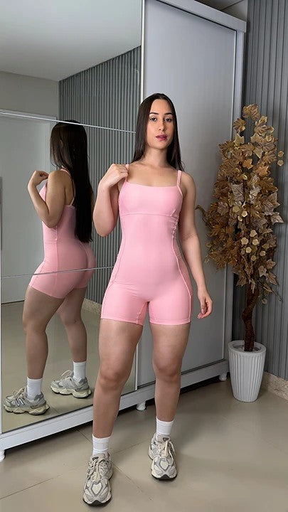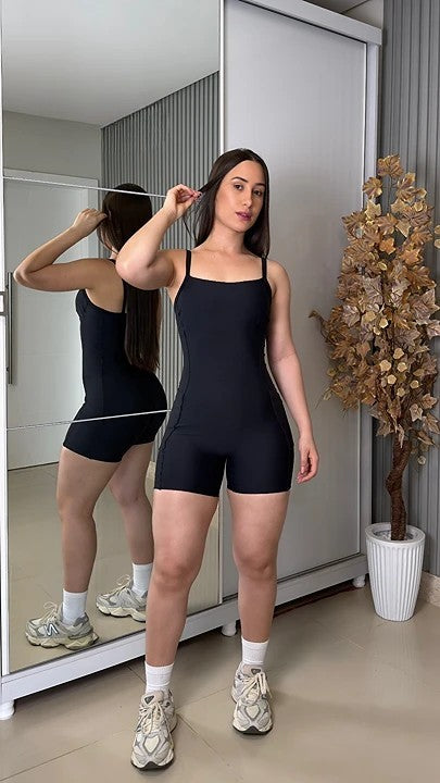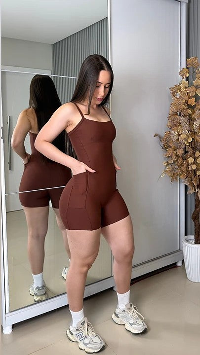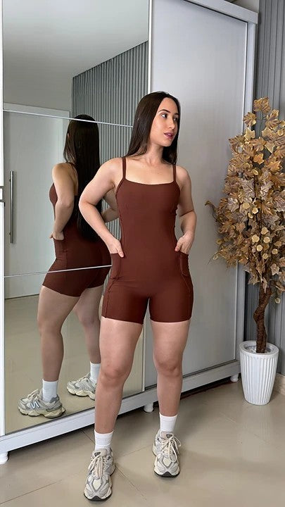 Macaquinho Fitness Gaby: Praticidade e Estilo com Bolsos Laterais